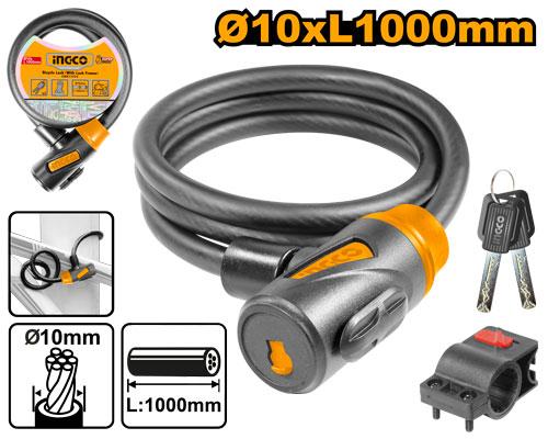 IngcoIngco Bicycle Lock (With Lock Frame) DBK11010 Specification: Size:10X1000mm PVC coated braided High quality wire rope Padlock rack for bicycle fra...