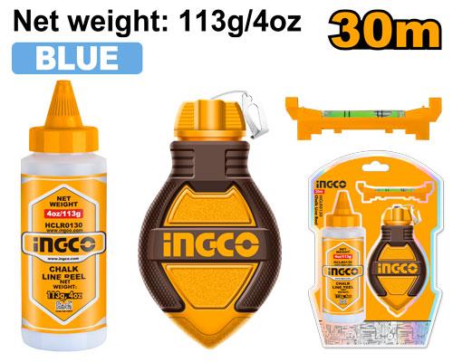 IngcoIngco Chalk Line Reel HCLR0130 Specification: Chalk line reel Length:30m With 1 bottle chalk With 1 pcs spirit bubble With1 pcs blue powder bottle...