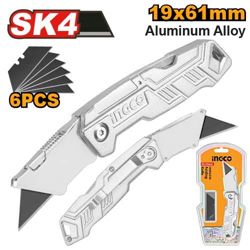 SEPTFOUR INDUSTRIAL SUPPLYIngco Folding Knife Specification: Folding knife Aluminum alloy handle Blade size:61x19mm With 5PCS blades HUKB61001 Packed by double blis...