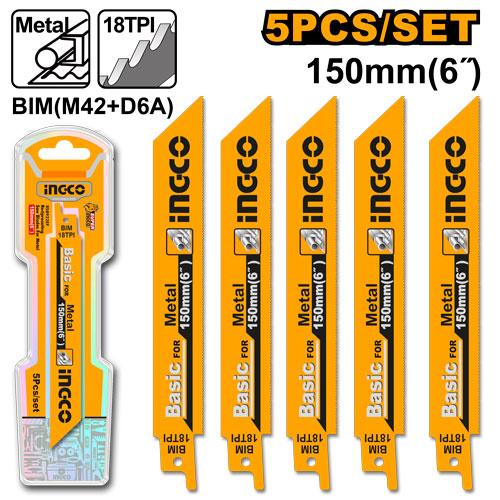 IngcoIngco Reciprocating Saw Blades Set Specification: 10pcs/set 6 Pcs 150mm(6")*6T Materials: HCS Teeth sharp: Ground and side set teeth Spee...