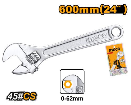 IngcoIngco 24" Adjustable Wrench HADW131242 Specification: Length:600mm(24") Adjustable clamp size:0-62mm Material:45# Carbon steel Packed by paper card
