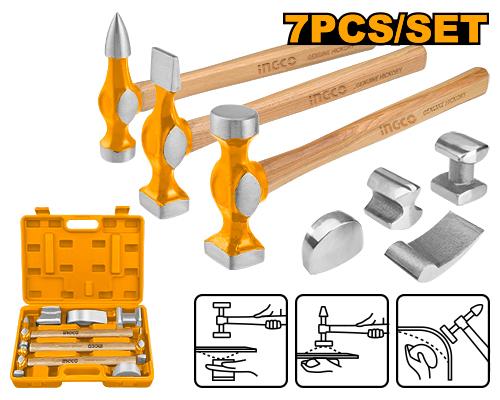 IngcoIngco 7pcs Body and Fender Hammer Set (Heavy Duty) Specification: Genuine Hickory handle 1Pcs Chisel end hammer 1Pcs Pick hammer 1Pcs Bumping hamm...
