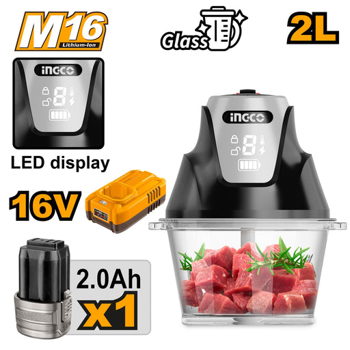 IngcoIngco 2L Cordless Chopper Specification: Capacity: 2L Wattage: 200W Voltage: DC 16V With LED display Function level: 1-2 With glass bowl Stain...