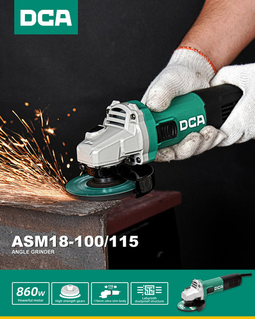 DCADCA 100mm 860wW Angle Grinder ASM18-100B (Toggle Switch) Specifications : Rated Power Input: 850W Max. Wheel Dia. 100mm or 4" Hole Diameter of ...