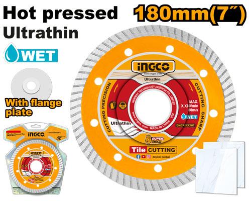 IngcoIngco 7" Ultrathin Diamond Disc DMD031801HT Specification: 180(7")X22.2mm Blade width:8mm Metal base thickness:1.2mm Universal purpose:ceramic,til...
