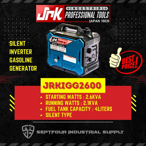 JRKJRK Silent Inverter Gasoline Generator Specifications : JRKIGG2600 Brand : JRK Model : JRKIGG2600 Starting Watts : 2.6KVA Running WATTS : 2.1KVA...