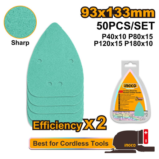 IngcoIngco 93 x 133mm Sanding Sheet Set Specification: Size:93*133mm 50Pcs/set P40x10pcs P80x15pcs P120x15pcs P180x10pcs Suitable for grinding w...