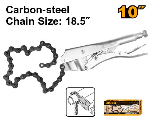 IngcoIngco 10" Chain Clamp Locking Plier HCLP0210 Specification: Carbon steel Size: 10" Chain size: 18.5"/470mm Nickle plated Weight: 700g Same functio...