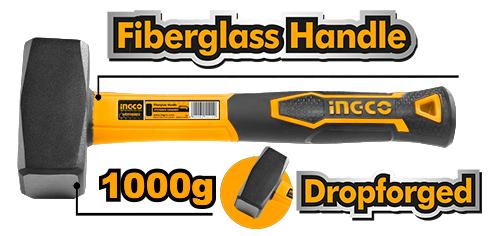IngcoIngco 1000g Stoning Hammer Specification: Weight:1000g Drop-forged hammerhead Heat treatment,45# carbon steel Unique design fiberglass hand...