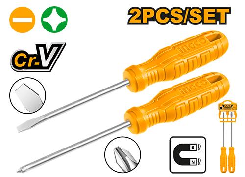 IngcoIngco 2 Pcs Screwdriver Set Specification: new design handle Material:CR-V Round blade 1pcs SL6X125mm 1pcs PH2X125mm Packed by plastic hanger