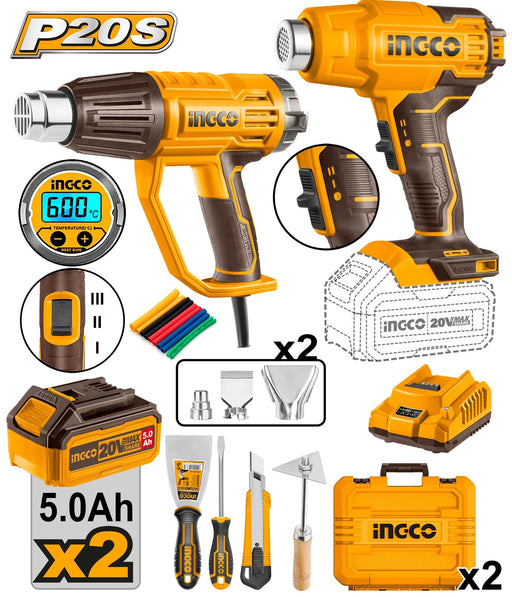 IngcoIngco Heat Gun Combo Kit Specification: Voltage: 20V With 1pc Lithium-ion Heat Gun (HGLI20025) With 1pc Heat Gun (HG200058) Heat Gun(HG2000...