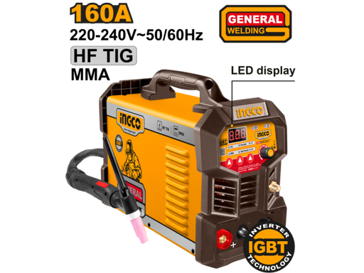 IngcoIngco 160A Inverter TIG/MMA Welding Machine Specification: Inverter TIG/MMA welding machine Input voltage(V):1~220-240 Frequency(Hz):50/60 TIG Out...