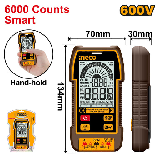 IngcoIngco 600V Digital Multimeter Specification: Display: TRUR RMS 6000 counts Smart Functions DC/AC Current: 6000uA/60mA/600mA DC/AC Voltage: 60mV/6...