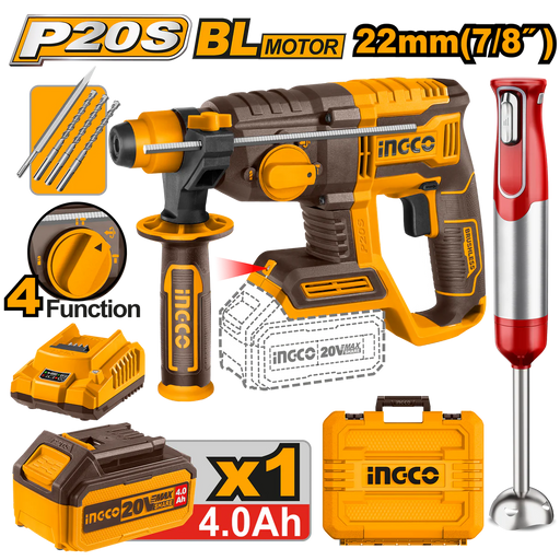 IngcoIngcoIngco 22mm (7/8") 2pcs. Li-Ion Cordless Combo Kit Specification: Lithium-Ion Rotary Hammer (CRHLI202081): Motor: Brushless Rated Voltage: 20...