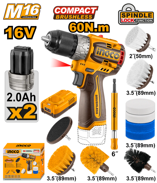 IngcoIngco 16V Compact Cordless Drill Specification: Rated Voltage: 16V No-load speed: 0-550/0-2000rpm Maximum torque: 60Nm Metal chuck Chuck...