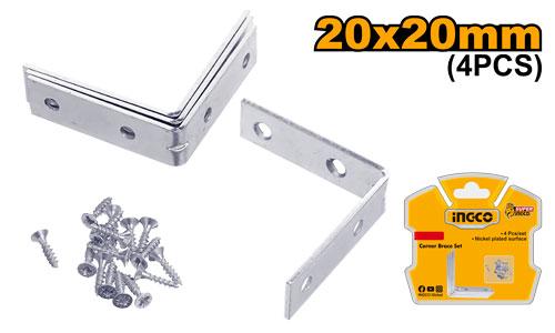 IngcoIngco 4pcs Corner Brace Set (20x20mm) HCB2020 Specification: 4 Pcs Corner Brace Size: 20*20mm Thickness: 1.9mm Nickel plated surface Includes 16 p...