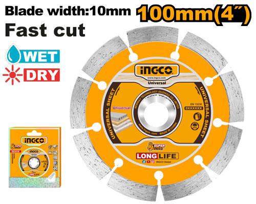 IngcoSpecification: 100(4")X16mm Blade width:10mm Designed for stone cutting, including concrete, brick, limestone, granite and marble Suitabl...