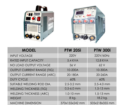PowerCraftPowerCraft DC Tig/ARC Welding Machine Available : 200A and 300A Included : TIG Torch Set and Argon Regulator