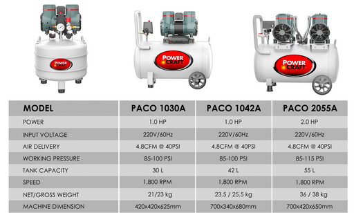 SEPTFOUR INDUSTRIAL SUPPLYPower Craft Silent and Oiless Air Compressor (New Generation) Available : 1Hp, 2Hp