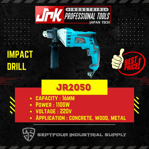 JRKJRK Hammer Drill JR2050 SPECIFICATIONS: Power : 1100Watts Voltage : 220v Speed : 0-2800r/min. Drilling Capacity : 16mm
